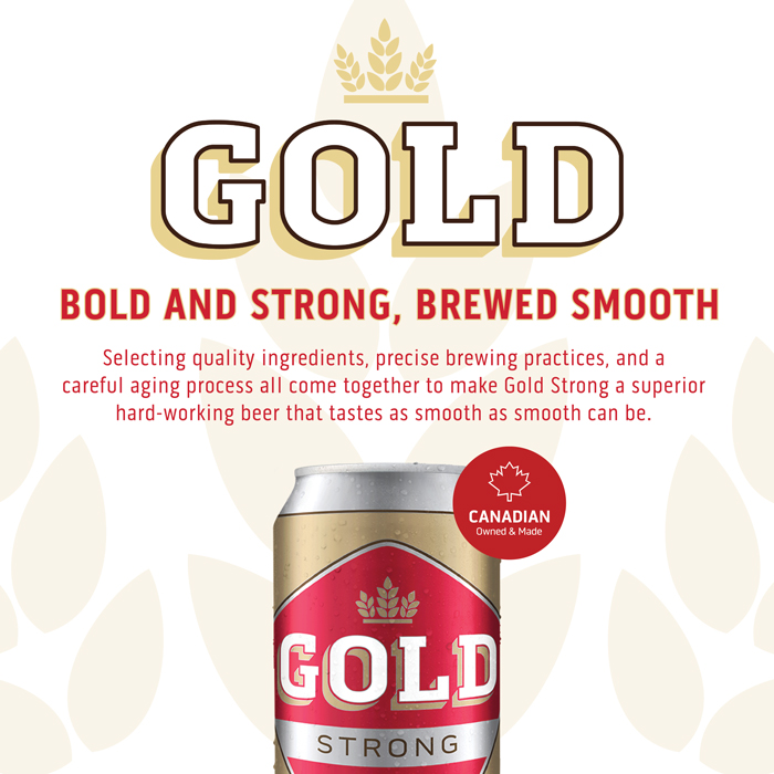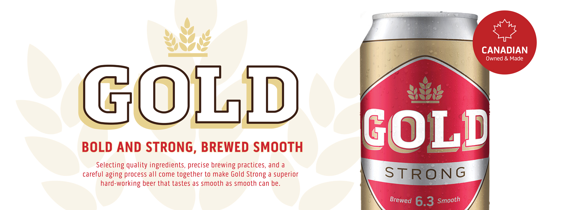 Selecting quality ingredients, precise brewing practices, and a careful aging process all come together to make Gold Strong a superior hard-working beer that tastes as smooth as smooth can be.
